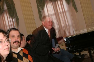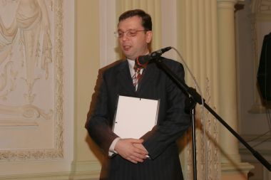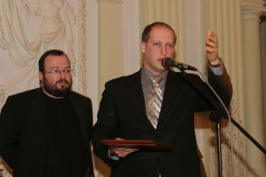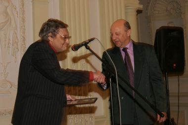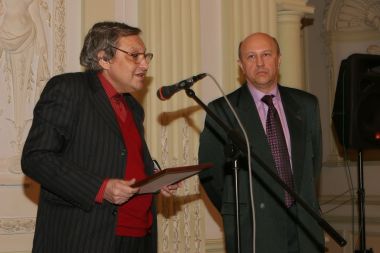 Вадим Цымбурский прочувствованно поздравляет лауреата