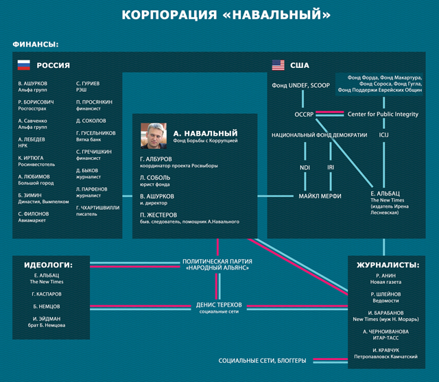 Наиболее вероятно, что бюджет Навального в немалой степени сформирован рядом американских фондов, официально декларирующих свою деятельность, как исключительно гуманитарную. Но нельзя не заметить, что деятельность этих организаций сильно активизировалась примерно год назад, что совпало по времени с назначением послом в США в России Майкла Макфола. Это назначение вызвало громкий дипломатический скандал, сутью которого стало то, что на столь важное стратегическое направление для США в качестве посла был назначен человек, который не только не обладает опытом дипломатической работы, но и прославился в качестве экспортера «цветных» революций – прежде всего на Украине. Особо отмечалось, что этот посол не карьерный дипломат и не специалист по России, зато он связан со спецслужбами через Демократический институт международных отношений США (National Democratic Institute for International Affairs, также NDI, NDIFIA), главой которого является не скрывающая своих антипатий к России Мадлен Олбрайт. Сразу после назначения посол первым делом встретился с российской оппозицией, что само по себе является знаковым обстоятельством; а кроме того, Макфол вскоре открыто заявил, что США будет поддерживать лишь общественные организации, стремящиеся к честным выборам.