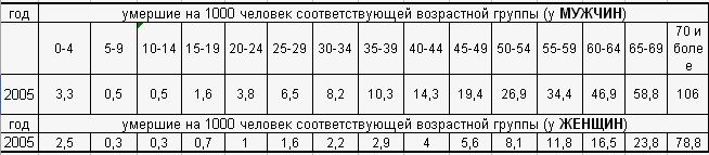 для составления прогноза демографической динамики нам потребуются еще данные коэффициентов смертности по полу и возрастам: