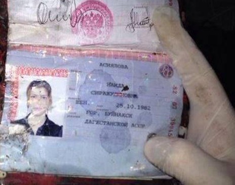 В статье говориться: «Фото страницы паспорта Наиды Асиляловой появилось через несколько часов после взрыва на одном из кавказских форумов и тут же разнеслось по всем соцсетям и СМИ. Но в нем удивляло не только то, что девушка сфотографирована в хиджабе, но и то, что фото грубо вклеено поверх другого. Когда же появился настоящий скан документа, который нашли на месте взрыва, администратор сайта поспешил объяснить это.