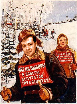 Я не видел медведевский "подарок", но название его мне кажется неточным. Я бы назвал эту картину "Преемник осуществляет cash out". На ней должен быть изображен малорослый стареющий мальчик со злыми глазками, смазывающий лыжи вонючей мазью – чтобы лучше скользили…