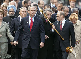 Чуть раньше на той же встрече Владимир Владимирович рассуждал о «суверенной демократии». Он подчеркнул, что «не так уж много сегодня в мире стран, которые имеют удовольствие и счастье заявить, что они являются суверенными, их можно по пальцам пересчитать. Это Китай, Индия, Россия и еще несколько стран. Все остальные находятся в определенной и очень существенной зависимости либо друг от друга, либо от лидеров блока».