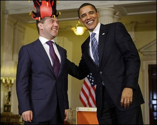 На фоне трудностей, которые будет испытывать премьер Путин 2-го апреля и после него, демонстративно выигрышной видится позиция Дмитрия Медведева. Который именно 1-го апреля проведет стратегически программную встречу со своим американским коллегой Бараком Обамой. Как сообщает журнал «The New Times», кремлевские либералы уже подготовили для президента России сенсационное конструктивное заявление, которым он откроет встречу с хозяином Белого Дома: