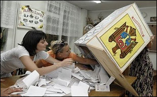 Что до формальной стороны дела, то внеочередные выборы 29 июля прошли довольно гладко. Явка была высокой: 58,8% при минимуме в 33. Как и ожидалось, больше всего мандатов — 48 из 101 получила Партия Коммунистов (ПКРМ), правящая в Молдове уже 8 лет; далее следовали Либерально-демократическая партия (ЛДПМ) — 18 мандатов, Либеральная партия (ЛПМ) — 15, Демократическая партия (ДПМ) -13 и Альянс «Наша Молдова» (АНМ) — 7. Прочие конкуренты остались за бортом, не преодолев 5% барьер. Впрочем, победителей все равно нет — ни одна из возможных конфигураций не позволяет создать устойчивую правящую коалицию.