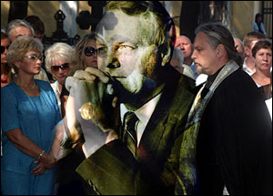 На похоронах присутствует весь цвет политической элиты страны — Путин, Степашин, Чубайс и многие другие представители «команды Собчака».