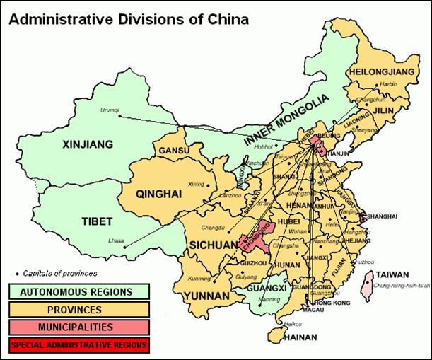 Так, в КНР наибольшую вероятность отделения имеют национальные автономные районы, имевшие в прошлом свою государственность и населенные по преимуществу не китайским этносом, исповедующим иные религиозные ценности. Это СУАР, Тибет, Гуанси-Чжуанский автономный район. Далее Гонконг и Макао, только недавно присоединенные к КНР и имеющие статус особых автономных зон. Вероятность отделения провинций и муниципалитетов от Пекина меньше, но нужно отметить, что на территории этих провинций в течение многовековой истории Китая существовали самостоятельные государства. В частности, только в 20 веке Сычуань трижды (в 1911, 1915 и 1921 гг.) объявляла о своей независимости.