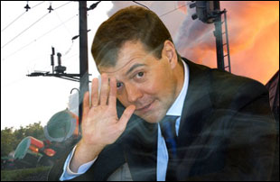 Меня позабавило то, что Медведев, находясь в Сингапуре, провел интернет-совещание с министрами по поводу взрыва складов боеприпасов в Ульяновске и поручил … письменно ему доложить через две недели, и еще он сказал, цитирую: « …передайте привет сотрудникам МВД и МЧС».