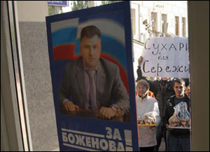 Надо ли говорить, что возглавляющий город последние пять лет и доведший его «до ручки» Сергей Боженов представляет партию «Единая Россия». Однако авторитет лидеров партии не всесилен — на октябрьских выборах, по данным независимых опросов, Боженов набрал не более 15 % процентов голосов. Беспрецедентная по наглости кампания фальсификации — с бандитами, оккупировавшими участки и не допускавшими туда избирателей, избиениями наблюдателей и переписыванием протоколов позволила-таки «нарисовать» результат в 65 %. По циркулирующим в Москве слухам, административное прикрытие астраханских выборов обеспечивал непосредственно секретарь генсовета «Единой России» Вячеслав Володин, что обошлось Сергею Боженову в несколько миллиардов рублей.