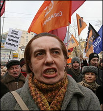 Одна из «отказниц» — выглядевшая, в отличие от многих присутствовавших, отнюдь не как бомжиха, а как молодая симпатичная хорошо одетая бизнес-вумен — проявила изрядную настойчивость в своём желании таки оказаться записанной в ряды движения «Солидарность». За что и была буквально за ноги и за руки вытащена из зала дюжими телохранителями господина Каспарова — сработали по лекалам бойцов ОМОН на какой-нибудь Триумфальной площади, никаких различий не было видно.