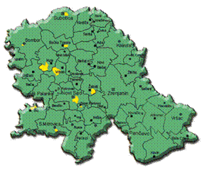 Расселение русин в Воеводине (Сербия). (Показано желтым цветом)