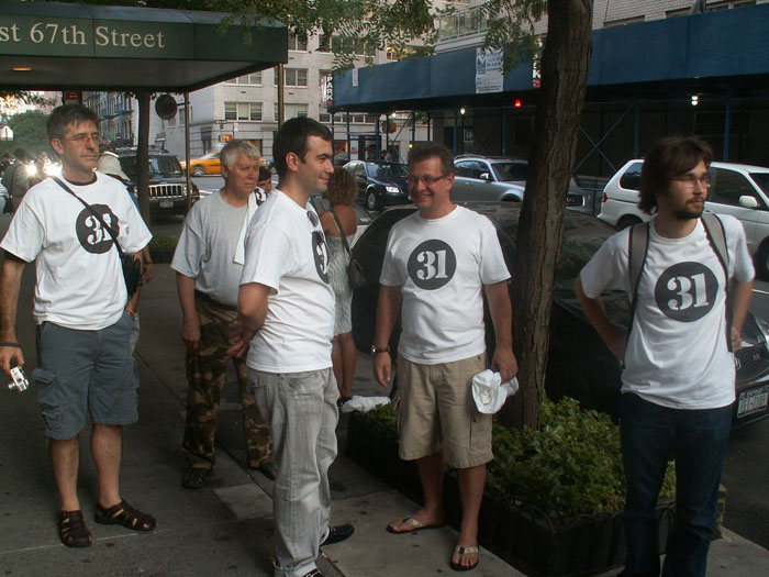 Изначально акцию пытался организовать А.Гольдфарб, имеющий репутацию человека все того же Березовского, однако он улетел в Лондон, и мероприятие пришлось в крайней спешке, буквально за неделю, готовить Наталье Пелевиной. Подготовить масштабный митинг за такое время было невозможно, информации категорически не хватало. Впрочем, это общая беда акций российской оппозиции, что внутри страны, что, видимо, за ее пределами: я, к примеру, узнал о том, что готовится, только потому, что специально искал в интернете что-нибудь на эту тему (и далеко не первая ссылка привела меня к цели). В итоге напротив российского представительства при ООН (136 East 67th Street) прошел пикет, в котором участвовали около 18 человек (я насчитал 15 человек — включая себя — в футболках с символикой «31», которые выдавали на месте, и еще трех-четырех сочувствующих, футболки не надевших — возможно, из-за жары). Присутствовали и журналисты — в частности, радио «Свобода», RTVi, «Сноб»; участники пикета также фотографировали друг друга.