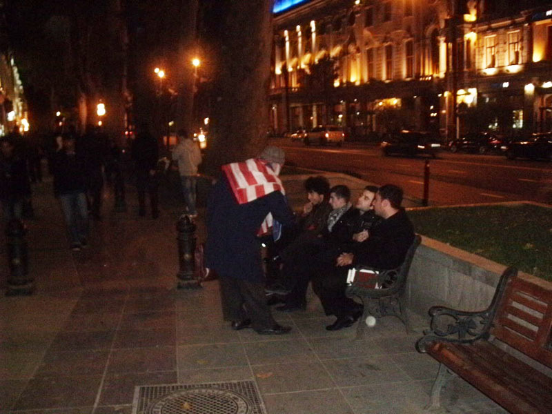 В подземном переходе между улицами Пушкина и проспектом Руставели играли уличные музыканты. Две гитары, комбик-усилитель и полноценная ударная установка. Играли блюз. Причем великолепно играли. Московские «сейшенеры» тут и рядом не стояли. Но по-русски говорили только трое примерно из двух десятков молодых людей. Самый юный русскоговорящий паренек, с которым я ходил на Пушкинскую улицу в винный магазин, изъяснялся очень и очень плохо. Двое парней постарше говорили лучше, но все равно плохо. Из русских рокеров они знали только Цоя. Больше никого. Как мне рассказали эти парни, музыканты в переходе играю просто для души. Денег им практически не подают. При мне, а слушал я их около часа, им кинули 20 тетри - около 4 рублей на русские деньги…