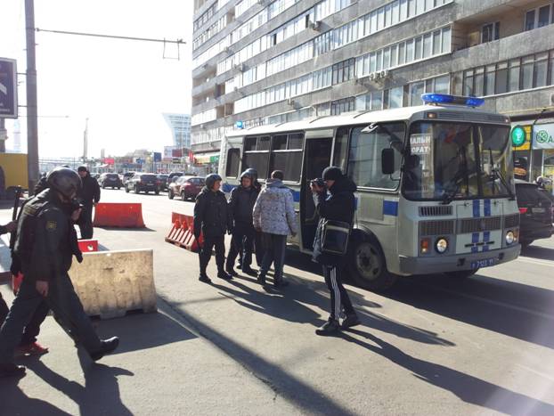 Несмотря на огромное количество лиц кавказской национальности (на Киевской находится одноимённый вокзал, а также небольшой грязный рынок), никаких драк не возникает. Националисты идут, огибая ТЦ «Европейский», но вдруг возле колонны резко тормозят непонятно откуда взявшиеся автозаки, и начинаются массовые задержания! По моим наблюдениям, скрутили около 40-50 человек, остальные успели разбежаться...