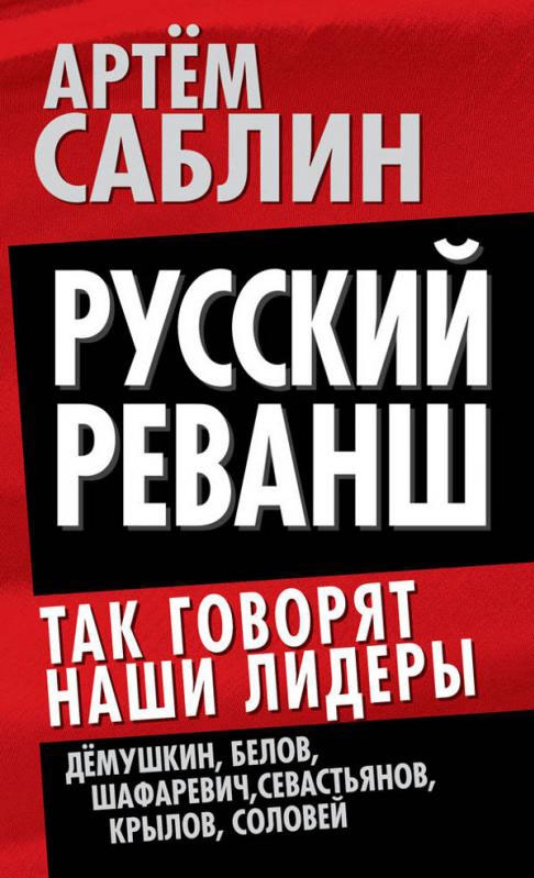 P.S. Книга «Русский реванш. Так говорят наши лидеры» носит сугубо исследовательский характер и не преследует целей разжигания межнациональной розни и нарушения законодательства РФ. Книга получила государственное юридическое экспертное заключение на отсутствие материалов, попадающих под понятия «экстремистская деятельность» (экстремизм).