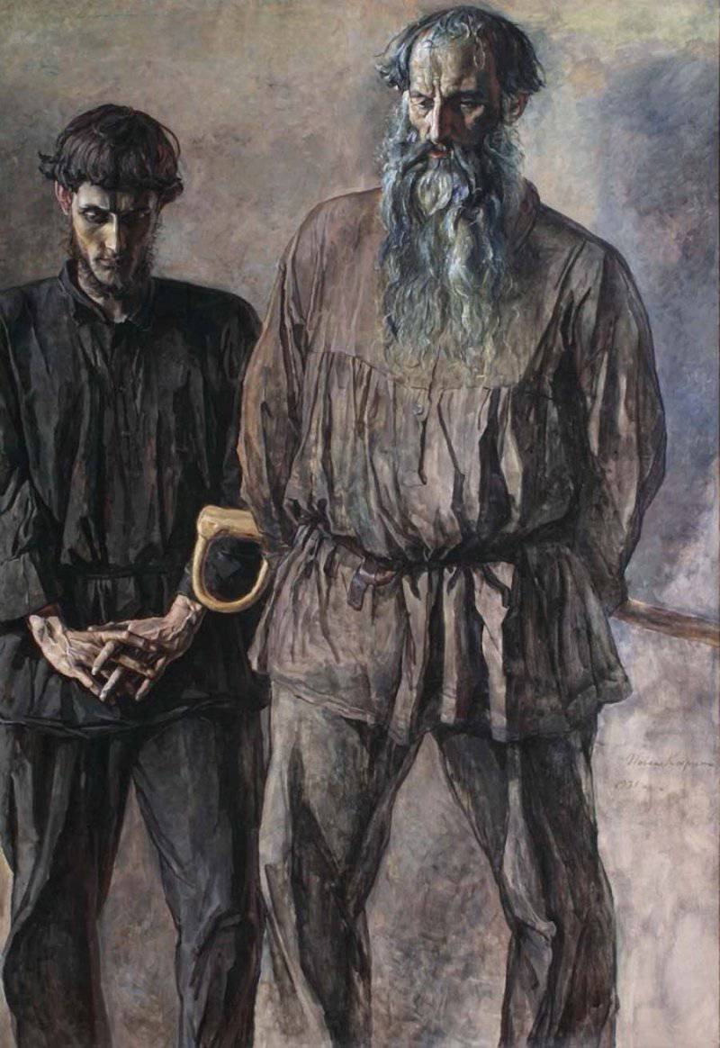 Да, речь шла именно о таком риске. Идеологическая обслуга режима открыто писала о «контрреволюционном гнезде» в коринской мастерской. На стол Сталину ложились «экспертизы» следующего содержания: «Подготовка Корина к основной картине выражается в сотне эскизов, натурщиками для которых служат махровые изуверы, сохранившиеся в Москве остатки духовенства, аристократических фамилий, купечества и т.д. Так, например, среди натурщиков Корина имеется человек, окончивший два высших учебных заведения и в 1932 году постригшийся в монахи. Корину позируют бывшие княгини, ныне ставшие монахинями, попы всех рангов и положений, протодьяконы, юродивые и прочие подонки... Наши попытки доказать ему ложность взятой им темы пока не имели успеха... Прошу Вашего указания по этому вопросу». Если бы не покровительство Горького (за которое многие его грехи простятся), Корин вряд ли бы долго ходил на воле…