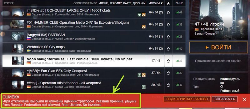 По сообщениям из блогов, администратор одного из немецких игровых серверов Battlefield 4 в ответ на "российскую агрессию" заблокировал российских игроков на сервере.