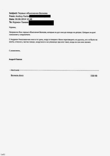 Ну и, конечно же, показания самого Волкова у Андрея Павлова появились еще до того, как он пошел на допрос. В свою очередь Павлов передал эти показания дальше, своим заказчикам из Казахстана, дабы держать всех в курсе и подкорректировать показания, если возникнет «производственная необходимость».