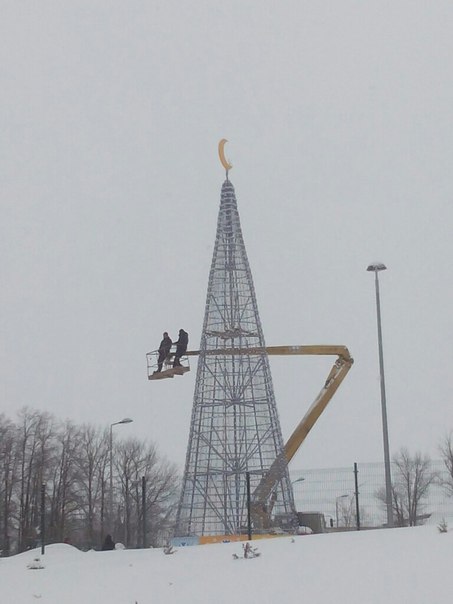 В канун Нового года в другом теперь райцентре Республики Татарстан – Высокая Гора (21 км от Казани) была установлена большая новогодняя ёлка с верхушкой в виде… исламского полумесяца.