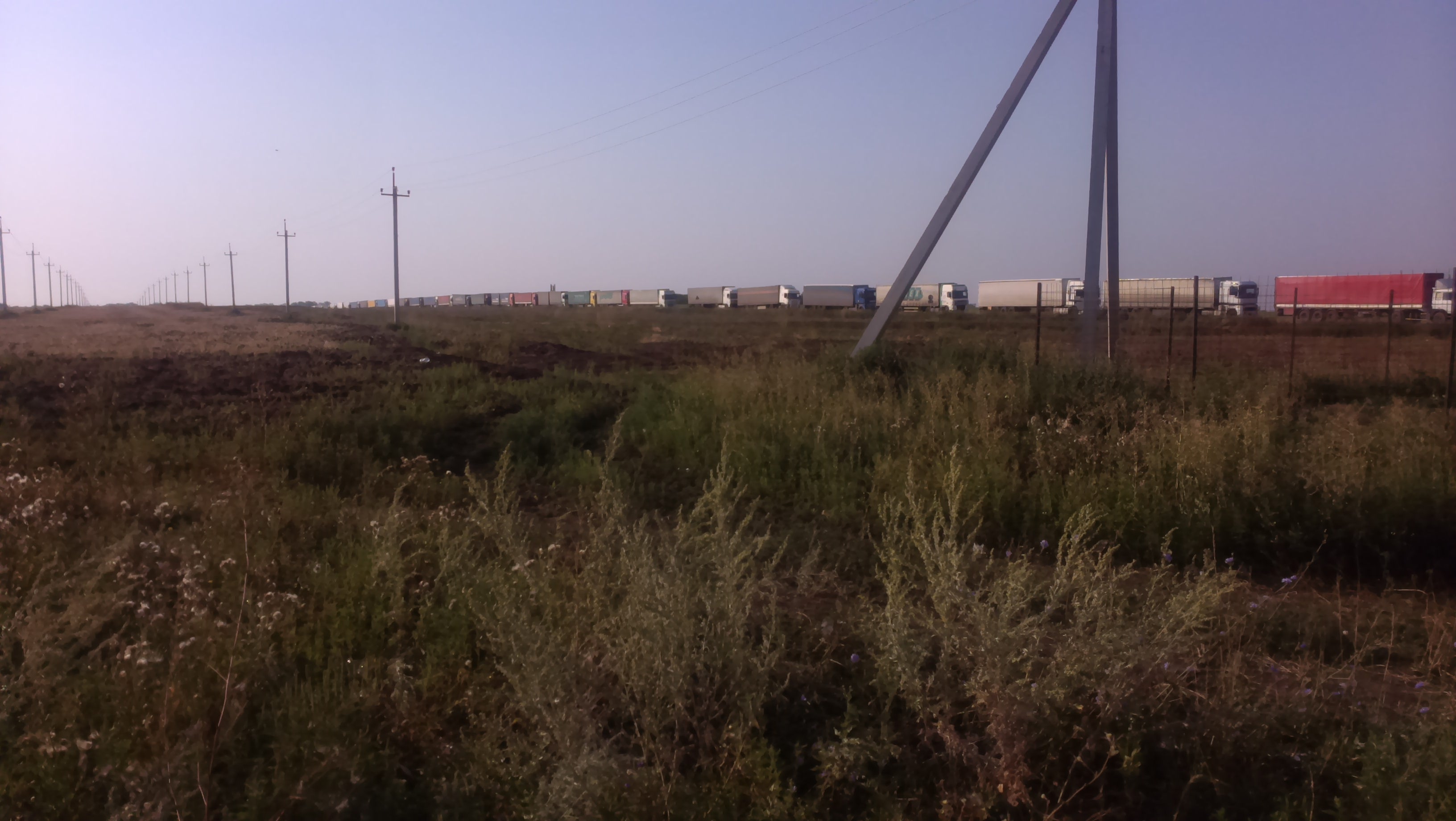 В начале года я писал о том, что поставки продовольствия блокированы как со стороны России, так и со стороны Украины. Все продовольствие шло через линию фронта с украинской стороны. Сейчас ситуация прямо противоположная. Очереди с фурами на границе России и Новороссии достигают нескольких километров (см. фото), зато с украинской стороны поставки практически прекратились.