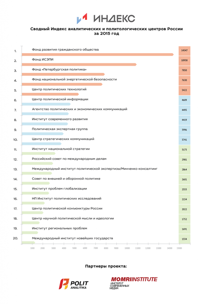 МОСКВА. Институт Национальной Стратегии вошёл в престижный рейтинг - Индекс аналитических и политологических центров за 2015 год.