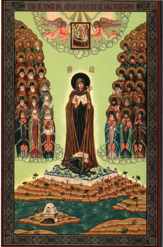 А ещё увидел я здесь как-то у матушки игуменьи Сергии (Лактош) прекрасную канонически и исторически содержательную икону, которую изготавливают по заказу, и можно за умеренное пожертвование монастырю получить в монастырском свечном ящике.
