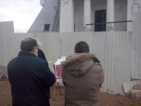 После панихиды прихожане остались убраться вокруг Храма-памятника - что рыбаки, что прохожие, что, может быть, строители накидали. Собрали по мешкам мусор, отнесли к машинам.