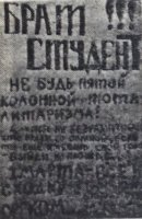 – «Брат студент!!! Не будь пятой колонной тоталитаризма! Если тебе не безразлично, что будет со страной, если ты ещё имеешь свой голос – выйди на площадь! 1 марта – все на сходку! Оргком. […]» [14, с. 2] (автор текста – И.Е. Алексеев);