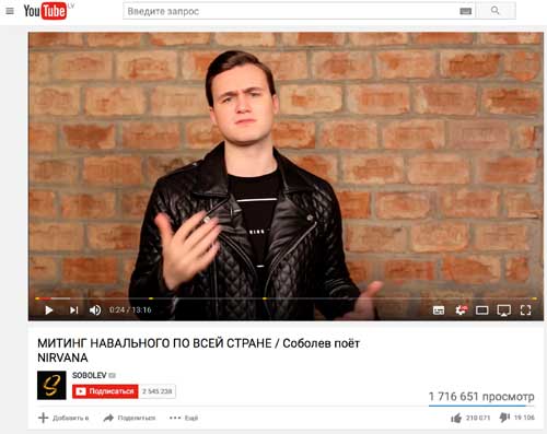 Но если говорить про борьбу в медийном плане, то один единственный блоггер Николай Соболев, за одни сутки эфира ролика про протесты получает миллионы просмотров: