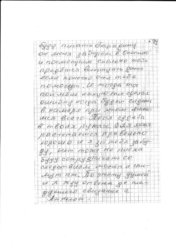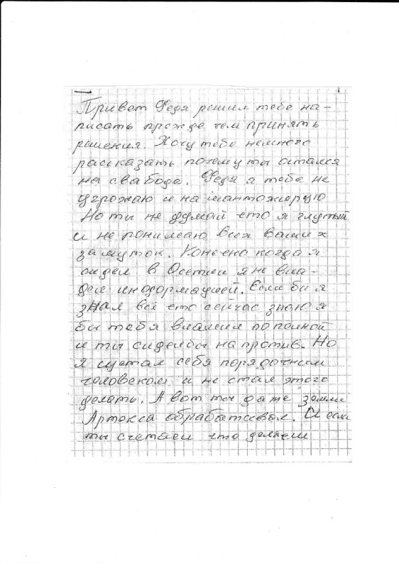 «Привет, Федя, решил тебе написать, прежде чем принять решение. Хочу тебе немного рассказать о том, почему ты остался на свободе.
