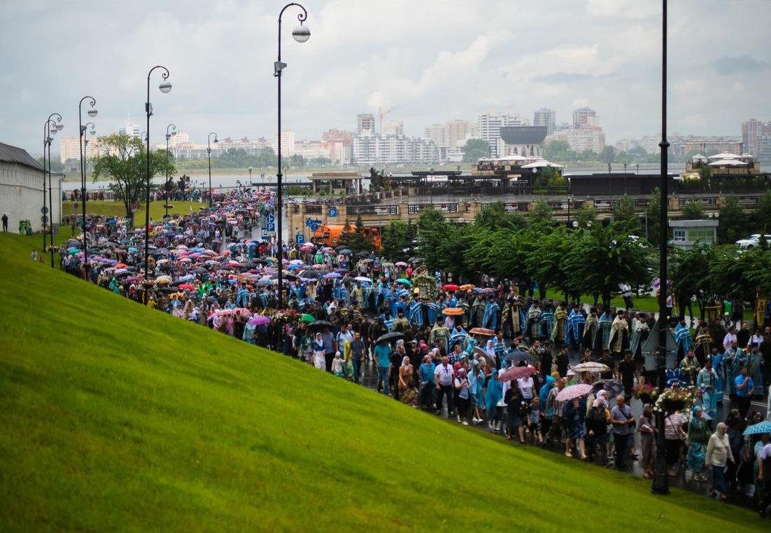 И, вот, ещё, небольшое, но важное наблюдение. Встречались мне на крестном ходе и татары. О кряшенах, чья природная вера – православие и о сознательно принявших православие татарах не говорю. Татары-мусульмане отдельные присоединяются к праздничному православному крестному ходу в этот день. Почему? А просто – кто из обычной благой солидарности с православными, а кто и с верой, что его участие усилит помощь единого Бога нашему городу и его жителям, молятся Ему по-своему об этом. Добрые соседи – ничего более здесь и не скажешь.