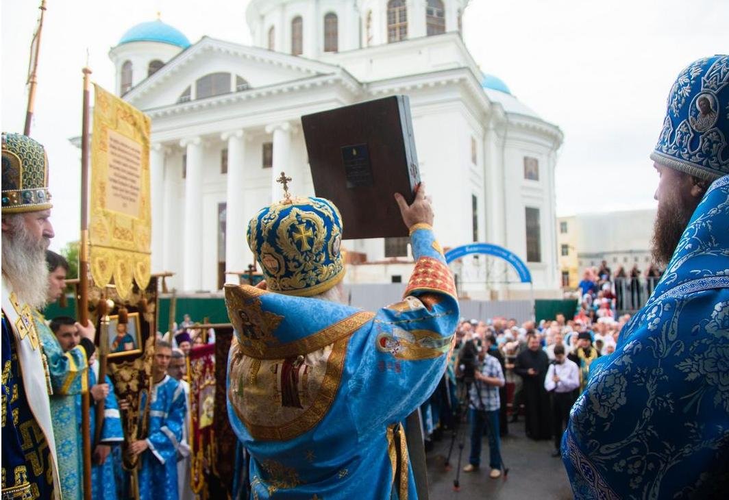 У воссозданного исторического Собора Казанской иконы Божьей матери после праздничного крестного хода. Фото с сайта Казанской епархии