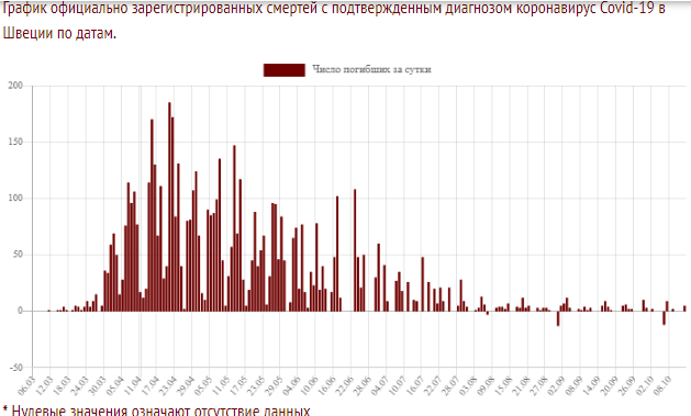 В Швеции, где практически отсутствуют ограничительные регуляции в связи с коронавирусом, как и в других странах, увеличивается число выявляемых инфицированных. Однако при этом остаётся почти неизменным число смертей. Возможно, что отсутствие дополнительных обременений к болезни (малоподвижность, ухудшение насыщения крови кислородом, постоянная психологическая накачка) способствовало тому, чтобы дополнительно не увеличивалось количество людей, переносящих болезнь в тяжёлой форме.