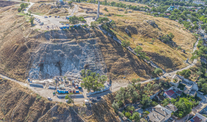 Погружение 1134 буроинъекционных свай в толщу горы на неисследованном склоне акрополя Пантикапея, 05.07.2018 г.