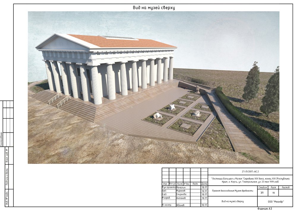Один из листов тома 27-П-2017-АС2 с эскизным проектом воссоздания Музея древностей, «Меандр», 2017 г.