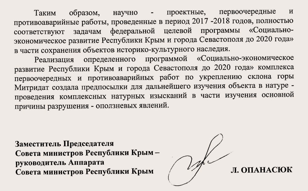 В то время как руководство «Меандра» было задержано следственным комитетом по делу о реставрации консерватории им. Н. А. Римского-Корсакова в Петербурге, в Крыму их разрушительные и непрофессиональные действия остаются безнаказанными — не проведены даже обещанные спасательные археологические раскопки на территории «укреплённого» склона.