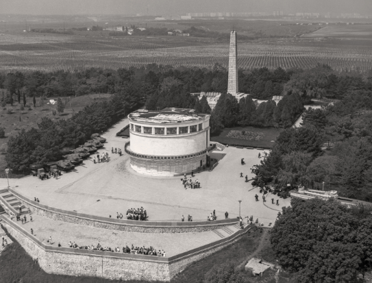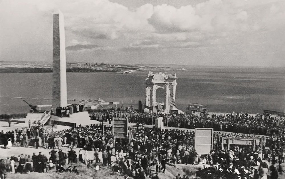 Открытие Обелиска Славы — объём часовни сохранён на оси лестницы, 08.10.1944 г.