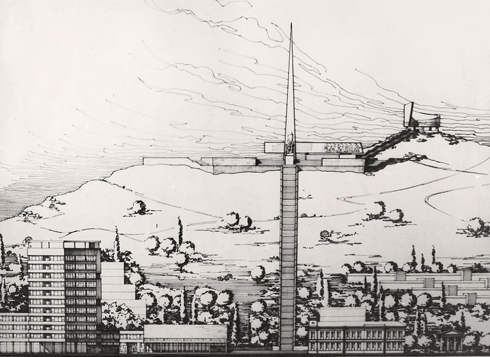 Проект крымской авторской группы по полной перестройке Обелиска Славы со смещением его на ось лестницы, 1975 г.