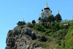 Другой нашей экскурсией была поездка в близлежащий Форос с заездом по извивающемуся «серпантину» к горной Церкви Воскресения Христова, возвышающейся над знаменитым курортом. Там находится санаторий со знаменитым большим парком, захваченным во время оно небезызвестным еврейско-украинским олигархом И. Коломойским, и закрытая государственная резиденция, когда-то «горбачёвская», памятная по августовским событиям разрушительного 1991 года, въезд в которую оберегают машины ГАИ. Но обо всём по порядку. Сначала мы посетили названный храм, построенный богатейшим купцом-монархистом А.Г. Кузнецовым в ознаменование чудесного спасения царской семьи при железнодорожной аварии в 1888 году. Царь Александр III тогда держал обвалившуюся крышу сошедшего с рельсов вагона, пока его семья и домочадцы из него выбирались. Храм, отделанный редким мрамором, был построен к 1892 году, и украшен мозаикой известными итальянскими мастерами и фресками (утрачены после большевистского церковного погрома со снятием крестов и разграбления храма в 1929 г.), написанными видными русскими живописцами, включая К.Е. Маковского.