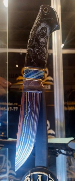 Основными экспонатами, как и всегда, были различные ножи. Среди представленных мастерами клинков практически любой из посетителей выставки мог бы найти изделие по вкусу. Так, например, там были представлены копии ножей времен СССР и подлинники советских ножей, ставшие для нас уже антикварными. У других мастеров был немалый выбор перочинных ножей - от совсем коротеньких до длинных, от «возрастных» до новоделов. Хозяйственные ножи разных размеров и форм, для хлеба, мяса, сыра и рыбы тоже были представлены на выставке в большом разнообразии. Были на выставке и более серьезные клинки – охотничьи, рабочие. Одними из самых ярких экспонатов выставки были, конечно, коллекционные, удивляющие необычными деталями и оригинальными формами, экспонирующиеся на подставках, которые сами по себе являются произведениями искусства, равно как и ножны некоторых ножей, на которые можно любоваться отдельно.