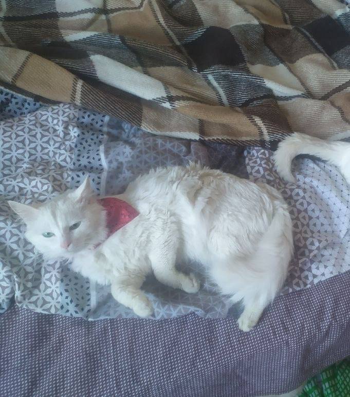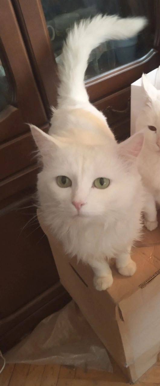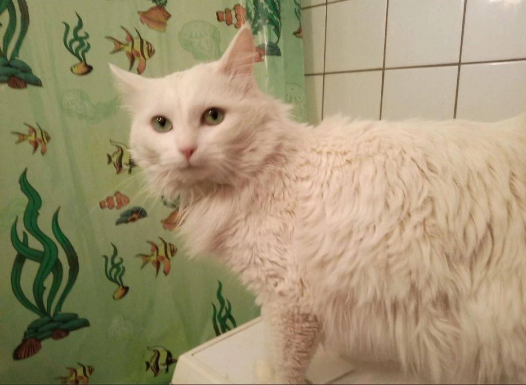 Коту около 10 лет, белый, зеленоглазый, домашний.