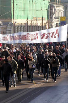 …А 15 лет назад это слово взяли на вооружение либералы начала 90-х годов — и противопоставили термину «русский». «Российский» в их устах отождествилось с «эрэфией», с РФ ельцинского образца. Два-три года навязывания обществу этого узкого, официозного отождествления — и патриоты-державники попались в ловушку! Они согласились с таким словопользованием, отвергли всё «россиянское». Говоря военными терминами — вчистую сдали позицию. Пытаясь же найти замену, державники вынужденно расширили применение прилагательного «русский». Оно стало в их речи единственным термином как для национального блока понятий («кровь-почва-язык»), так и для державного («язык-культура-общая-судьба»).