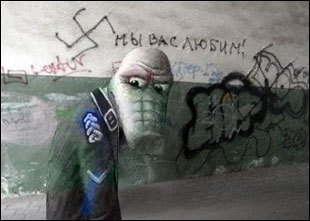 То есть: гёзы, будучи вообще-то христианами, демонстративно носили на шапках полумесяц и говорили, что «лучше служить султану турецкому, чем Папе». Для справки: полумесяц для тогдашней Европы значил примерно то же, что свастика для Европы нынешней. Тем не менее, соработников славного Тиля — кстати, националистов и демократов, — мы считаем героями, а их противников гадами. Так вот, весь так называемый «русский национал-социализм» — это нечто вроде гёзовской шапки. Все эти свастики, поклоны эсесовцам и так далее — просто способ плюнуть в лицо тварям, сидящим в Кремле и в телевизоре. Если только свастика способна испортить им настроение — пусть будет свастика. Если только лишь от имени Гитлера дрожат их пухлые подбородки — будем поминать Гитлера, плюнем его именем в рыла кремляди и россиянской «елитки».