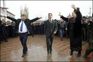 Вместе с тем в апреле 2007 года мало кто заметил визит в Чечню Дмитрия Медведева ) тогда - еще одного из преемников). Даже местные журналисты не слишком охотно стремились к тому, чтобы осветить (а теперь им придется освещать) визит вице-премьера Правительства РФ. Между тем, проницательный редактор газеты «Чеченское общество» Тимур Алиев еще тогда отметил (подчеркнем еще раз, цитата взята из апрельского текста грозненского журналиста): «Возможно, Путин хочет подружить будущего гаранта и Рамзана Кадырова».