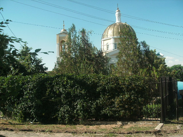 Вскоре мы свернули с центральной улицы Ленина на улицу Сергия Радонежского. Впереди засверкал золотом главный купол Казанского кафедрального собора, главного храма Элистинской и Калмыцкой епархии. Проехав по застроенной одноэтажными частными домами улице, мы поравнялись с храмом и вскоре уже входили на территорию теперь уже православного храмового комплекса.